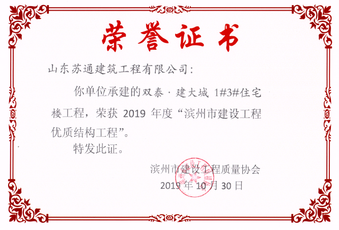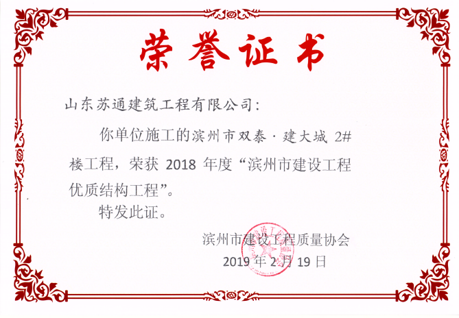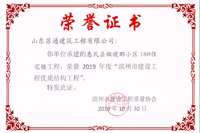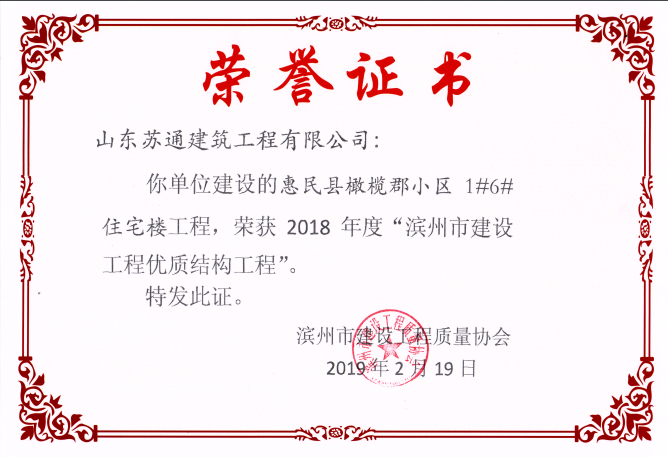 山東蘇通建筑工程有限公司,創(chuàng)建于2009年8月。目前擁有房屋建筑工程施工總承包壹級、市政公用工程施工總承包叁級、水利水電工程施工總承包叁級資質(zhì),同時還具有建筑裝修裝飾工程專業(yè)承包貳級、消防設(shè)施工程專業(yè)承包貳級、鋼結(jié)構(gòu)工程專業(yè)承包叁級、建筑機電安裝工程專業(yè)承包叁級等專業(yè)承包資質(zhì)。 公司總部坐落于山東省濱州市濱城區(qū)黃河十二路877號,現(xiàn)有辦公面積約2000平方米,機構(gòu)設(shè)黨支部工會辦公室、總經(jīng)理辦公室、綜合辦公室、工程管理部、經(jīng)營預(yù)算部、資產(chǎn)財務(wù)部、材料設(shè)備部、運行管理部、法律事務(wù)部等多個職能部門。公司管理體系已經(jīng)通過了GB/T 19001及GB/T 50430質(zhì)量管理體系、GB/T 24001環(huán)境管理體系(EMS)、GB/T 28001職業(yè)健康安全管理體系(OHSMS)等體系的認(rèn)證。 公司承建完工了濱州市建大教師之家、建大清怡苑、香格里拉水岸綠城住宅小區(qū)、雙泰建大城、曲阜崇德公館住宅小區(qū)、北海新區(qū)御景藍灣住宅小區(qū)、沾化德榮國際華城住宅小區(qū)、惠民橄欖郡住宅小區(qū)等工程項目,目前在建工程項目有:濱州市頤高國際電子商務(wù)產(chǎn)業(yè)園住宅小區(qū)項目、濱州市東盛國際項目、高新區(qū)建大中央華府住宅小區(qū)項目、濱州市融匯新里程住宅小區(qū)項目、濱州市建大秦皇壹號住宅小區(qū)項目、濱州市森林花...